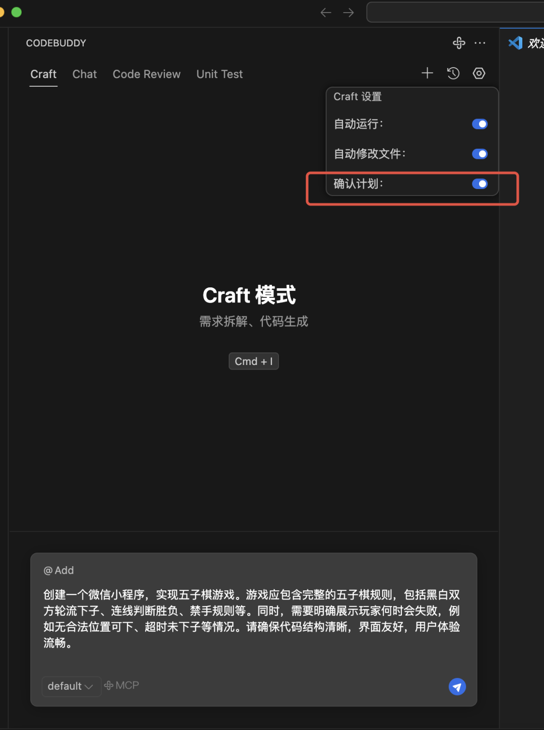 Craft的对话面板支持历史记录回溯与版本树管理,解决了AI生成代码的「面目全非」的难题。开发者可逐行采纳/拒绝代码变更,或在出现功能偏离时通过技术对话实时纠偏。同时Craft推出Plan模式,可以很好的解决需求描述不清楚的进阶的计划智能体辅助做好需求澄清工作。相较于Cursor的Agent直接生成,会更容易达成修改目标。