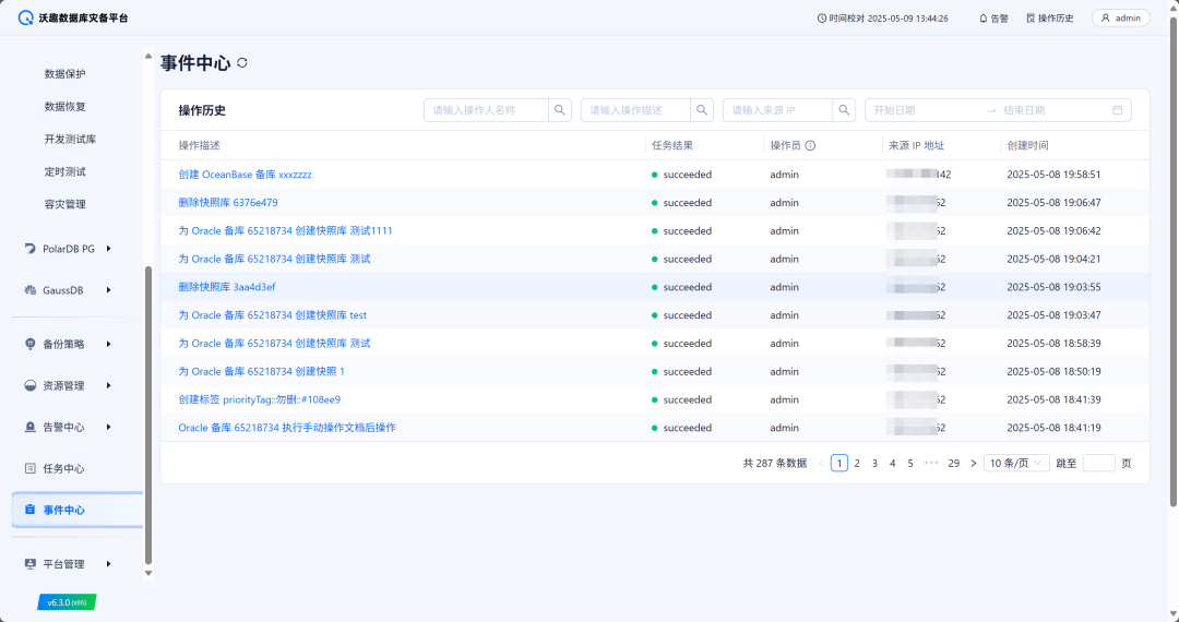 统一视图:集中展示所有灾备任务及任务的具体状态(运行、暂停、取消、跳过、成功、失败等)