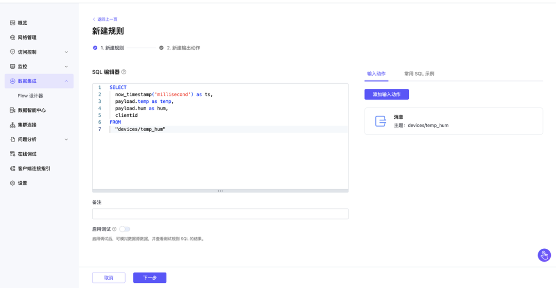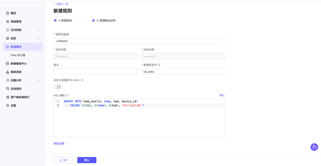 ⼀站式配置:⽆需分别管理 EMQX 和 TDengine 的连接参数,统⼀在 EMQX Cloud 控制台完成所有配置。
