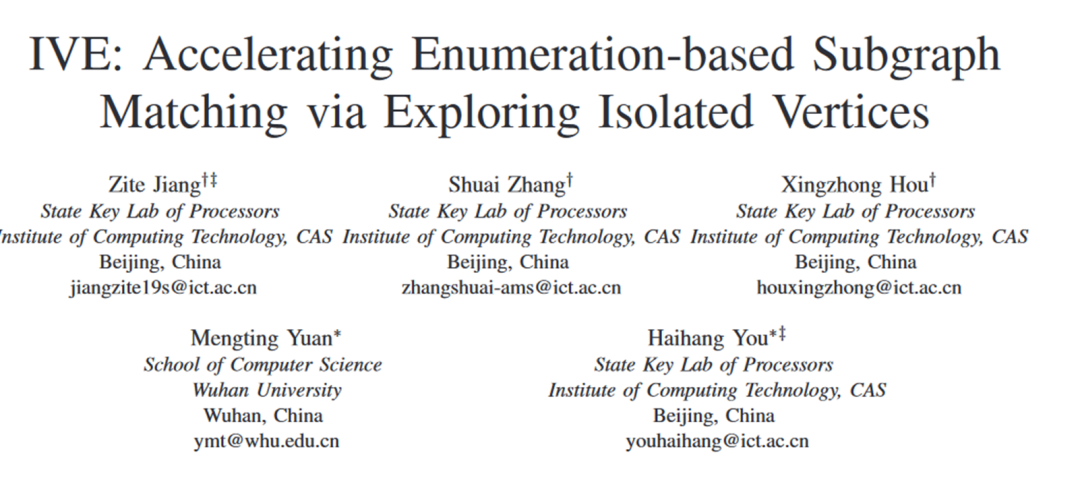 [7] Jiang, Zite, et al. "Ive: accelerating enumeration-based subgraph matching via exploring isolated vertices." 2024 IEEE 40th International conference on data engineering (ICDE). IEEE, 2024.
