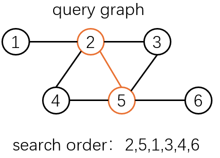 显然,孤立节点的数量取决于搜索顺序。因此,这篇工作提出了一个启发式算法尝试获得一个搜索顺序最大化孤立节点的数量。该算法每次会选去度数最大的节点,把该节点加入搜索顺序中,并且将它从查询图中删去。接着,算法会在残留的查询图中重复该步骤,直到搜索顺序被确定。