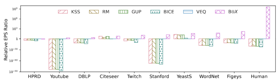 在实验方面 BICE 在大部分的情况下都能够有比较好的效果。然而在小部分情况下不如 VEQ [2] 算法或者 Rapidmatch [4] 算法。这是因为当平均度数高的时候,二分图的过滤效果并不好,并且二分图此时很大,维护代价很高。