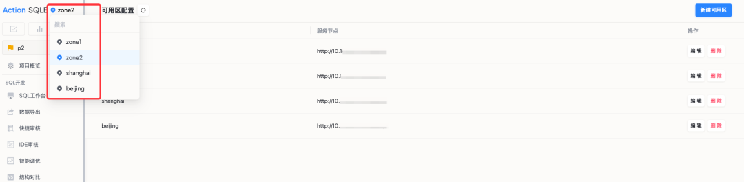 管理员分区域:管理员在系统中创建对应网络区域的“可用区”(如Zone-北京、Zone-上海)。 成员登录即用:成员按权限进入对应可用区,像管理本地数据库一样操作。