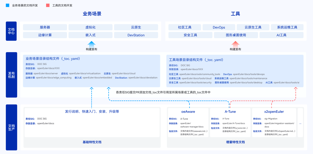 文档生产机制改进:建立开源协作模式,文档开发下沉至各 SIG 组,制定标准化模板与规范,结合自动化门禁管理,提升文档质量和更新效率。同时,社区上线《文档开发指南》,开发者可以根据指南参与openEuler文档开发:
