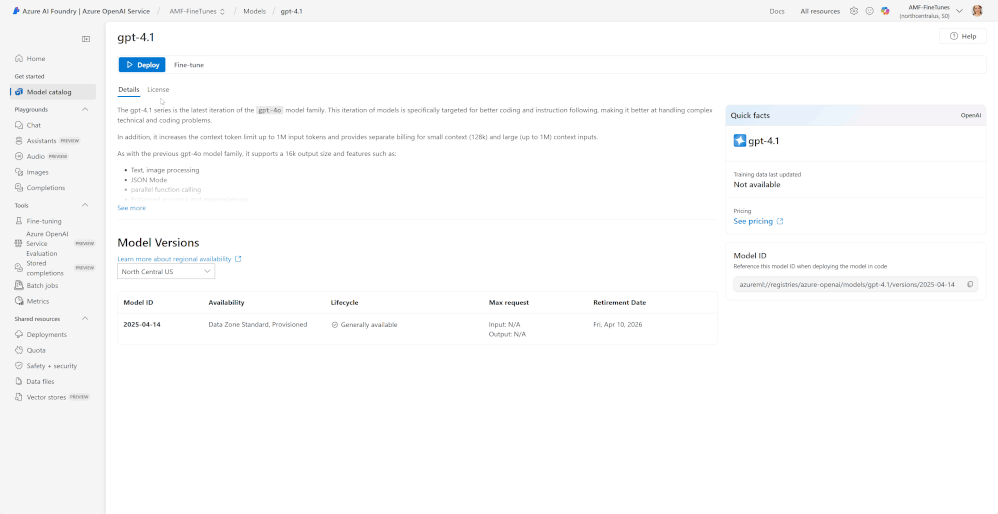 我们在前不久刚刚宣布 GPT-4.1 系列模型重磅上线,现在我们又带来激动人心的消息,Azure OpenAI 服务(国际版)现已支持对 GPT-4.1 和 GPT-4.1-mini 进行微调,并可通过 Azure AI Foundry(国际版)实现部署和管理。