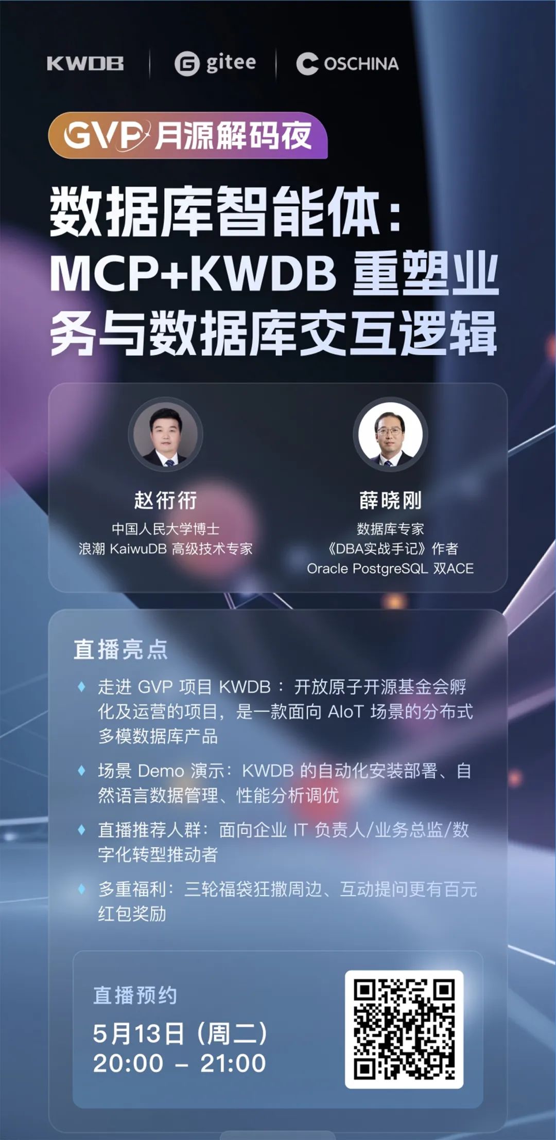 5 月 13 日(本周二),最新一期的「GVP 月源解码夜」上,KWDB 邀你共同走进全新上线的 MCP Server,带你看见数据库交互的全新可能。