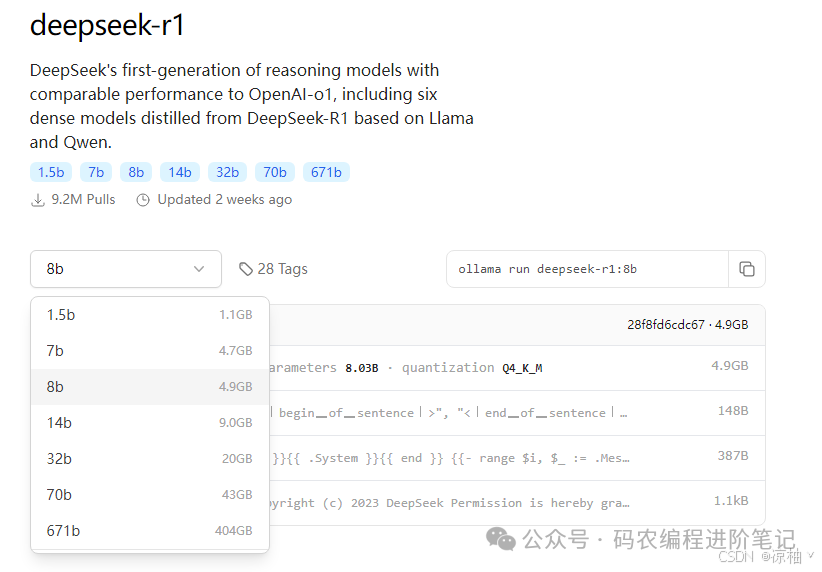 通过ollama下载 DeepSeek-R1模型地址:deepseek-r1
