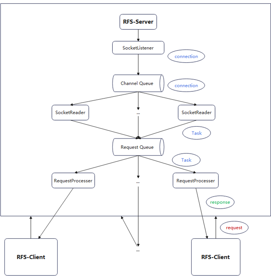 SocketListener线程:实时监听来自RFS-Client发送的连接请求;