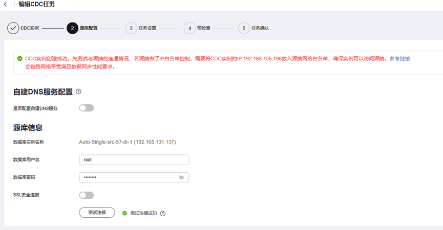 源库信息中,开启CDC开关,可以选择CDC任务,后续从CDC中拉取日志。
