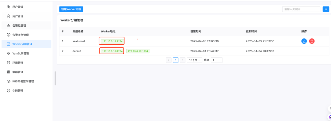 安全中心-Worker分组管理,创建一个这个节点ip的分组,用于以后需要seatunnel的任务跑该分组