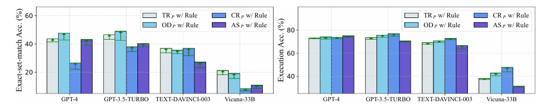 ● 由于资源有限,实验只测试了两种规则暗示,探索更多规则可能会进一步有益于基于大语言模型的Text-to-SQL解决方案。
