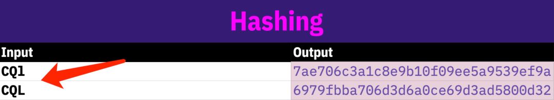 注意到更改一个大小写字母,后面输出的哈希值都会产生翻天覆地的变化。