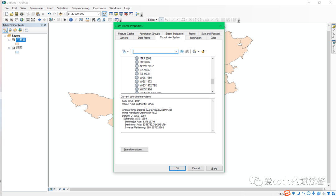 我们看到陕西省和内蒙古自治区的边界贴合的很自然,右击选择Data Frame Properties