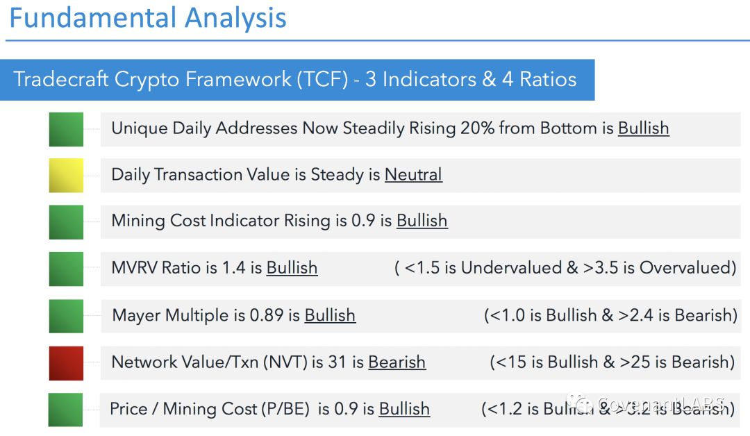 在Tradecraft,我们使用这三个指标和4个比率来做基本面分析。现在加密资产之间的关联性很高,因此我们使用比特币的网络来确定整个加密市场的总体情况。目前,这些指标尚未用于评估每一个加密资产。这可能会在未来发生变化,但目前这些指标只被用来做一般性参考。