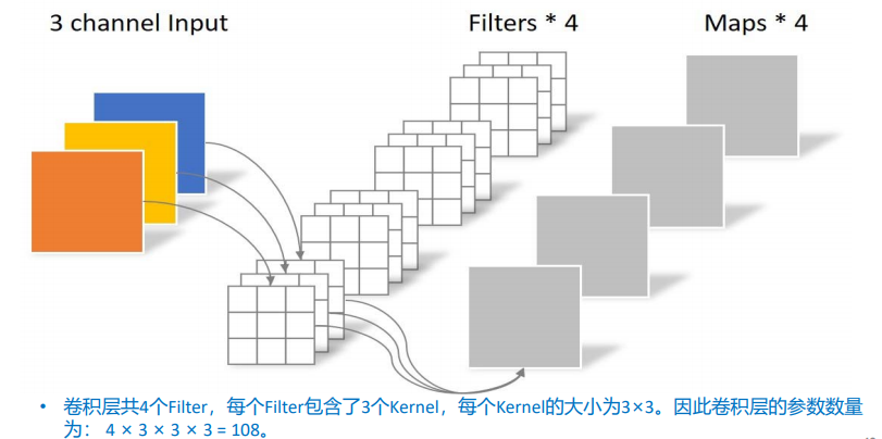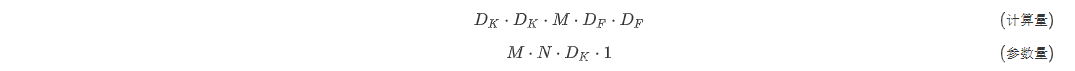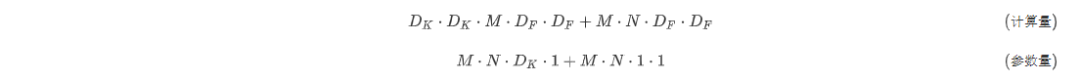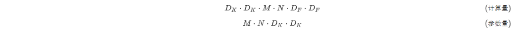 其中M是输入通道数,N是输出通道数,是卷积核大小,是特征图大小。