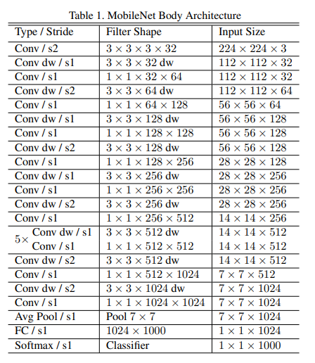 论文:Howard, A. G., Zhu, M., Chen, B., Kalenichenko, D., Wang, W., Weyand, T., ... & Adam, H. (2017). Mobilenets: Efficient convolutional neural networks for mobile vision applications. arXiv preprint arXiv:1704.04861.