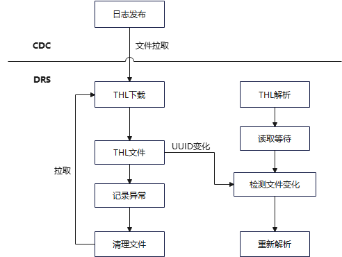 1中,CDC负责日志下载、日志解析和增量数据的发布;DRS负责全量迁移、日志下载、日志解析(过滤)和增量数据回放。