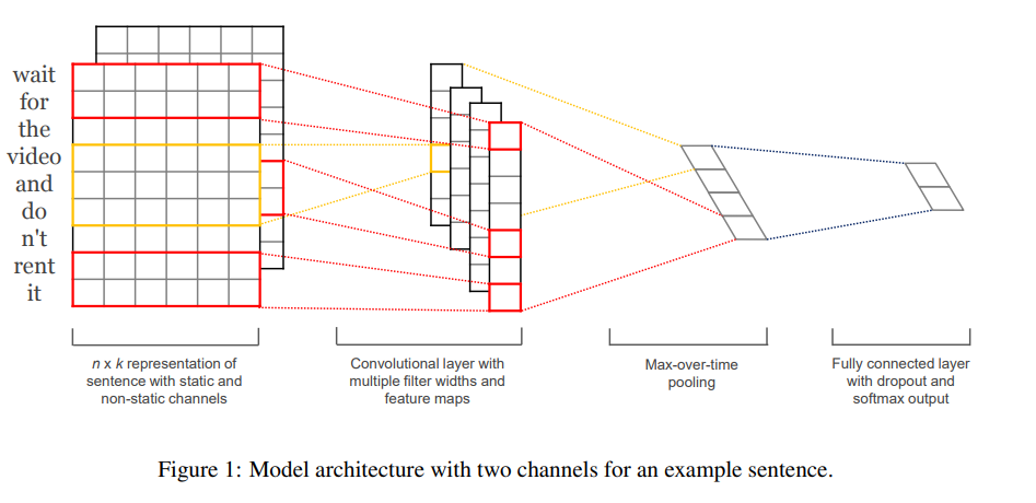 是偏置项, 是非线性函数。这个卷积核遍历整个句子的词用于生成特征图其中