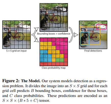 随着深度学习的发展,特别是卷积神经网络在图像识别中的应用,不少人已经试图利用卷积神经网络来进行目标检测和识别,将目标检测和识别任务统一为端到端的学习框架。最早出现基于深度学习的目标检测方法是以R-CNN为代表的系列,例如R-CNN、Fast R-CNN和Faster R-CNN。这些方法大多数是分为两步,一是候选框的提取,二是目标分类。该篇文献提出另一种目标检测和识别的思路,作者将目标检测看作回归问题,直接分析整张图像,从空间上分割边界框和预测类别的概率,仅用单个神经网络一次计算就可以从图像上得到目标的边界框和类别概率,其检测速度大大超越以往的R-CNN系列。