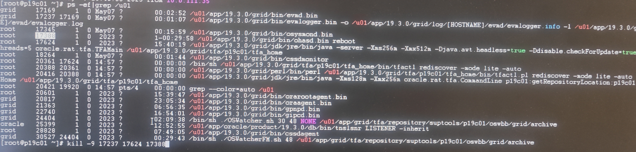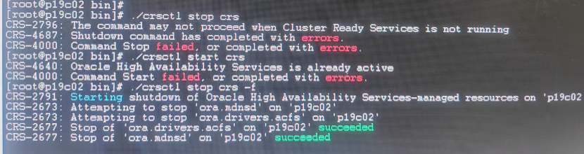 建议直接重启下服务器,存储已经好了,重启后会直接把集群拉起来,但是这台服务器上有别的环境,相对这套rac比较重要,不可以重启,采取kill残余进程