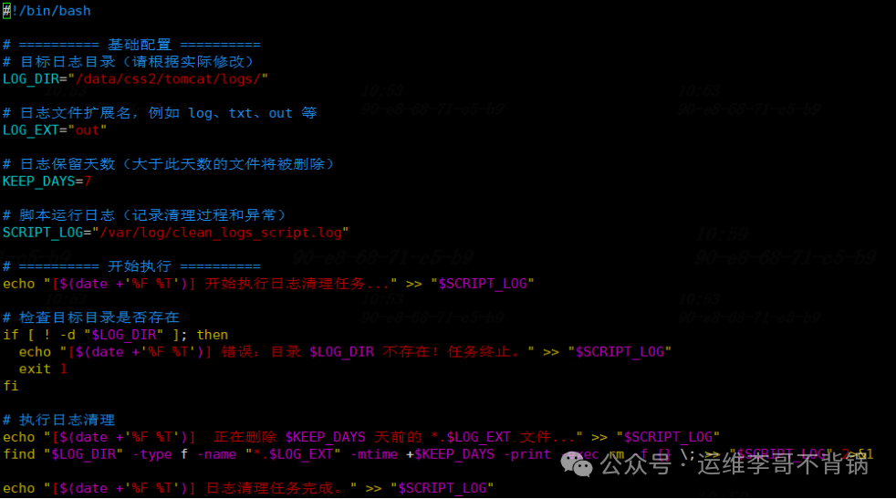 echo"[$(date +'%F %T')] 正在删除 $KEEP_DAYS 天前的 *.$LOG_EXT 文件..." >> "$SCRIPT_LOG"
