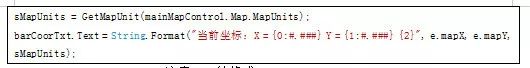 根据axMapControl.Map.MapUnits获得当前地图的单位,然加到toolStripStatusLabel控件中