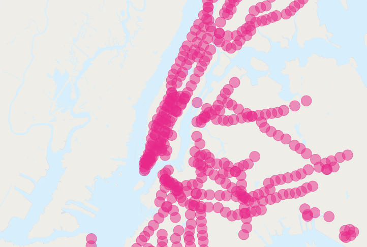 但是,这个问题遇到了重复计算的问题:许多人将在多个地铁站的500米范围内。比较纽约的人口:
