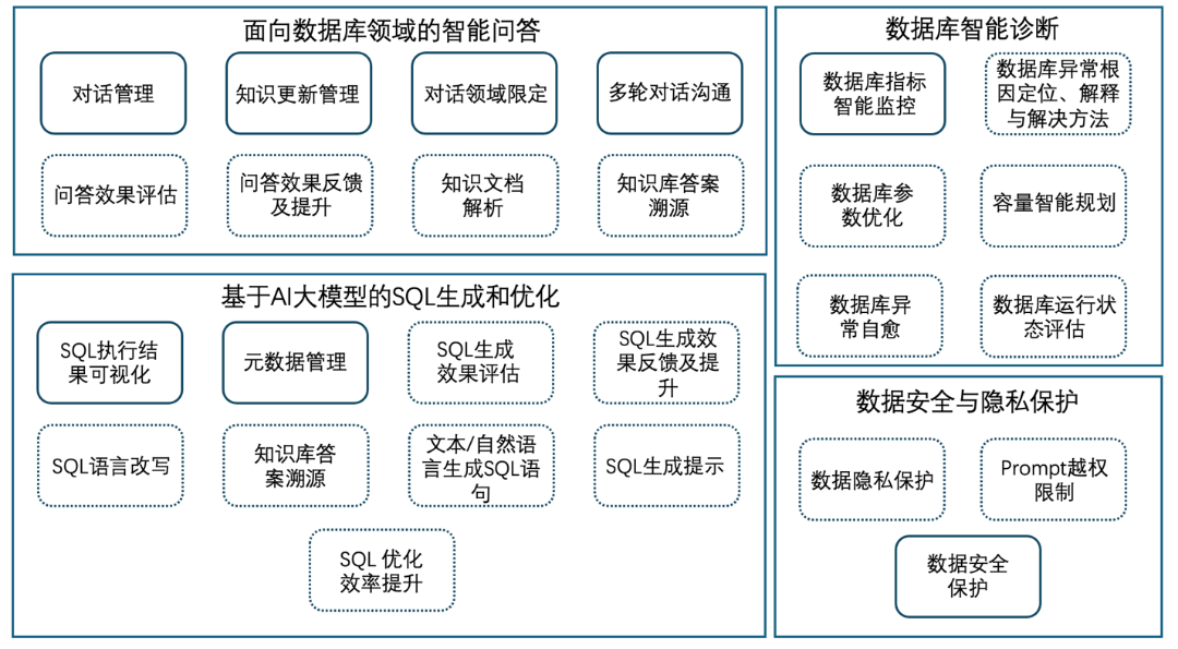 随着AI大模型技术不断发展和应用,其在赋能数据库开发管理方面提供了丰富的可能性。《数据库发展研究报告(2024年)》指出,作为数据库技术发展趋势之一,AI与数据库融合迸发无限潜力,生成式AI在数据库结构设计、架构设计、数据分析挖掘等方面可以不同程度简化人员操作,提高开发、运维、分析的效率。