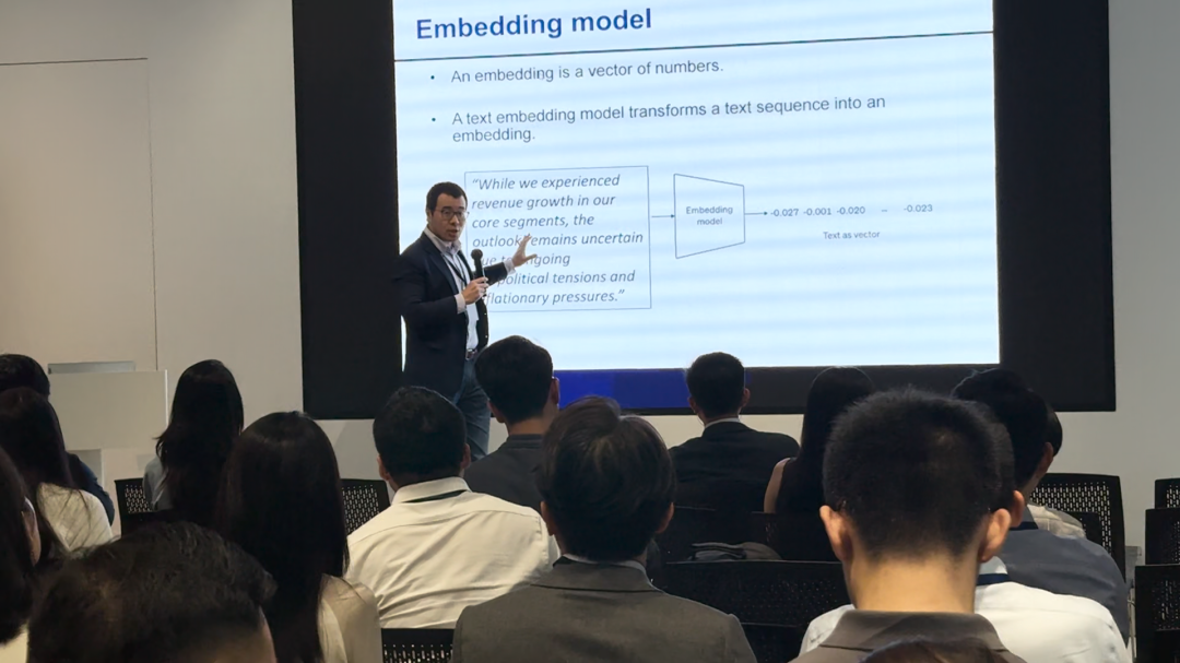 AbaciNLP 创始人杨毅教授,带来了题为“从文本到数字:构建先进的金融文本嵌入式模型”的精彩分享。他指出,金融领域充斥着大量文本信息,如新闻报道、研报、财报等,如何将这些非结构化文本转化为可量化的数字信息,是提升金融分析能力的关键。
