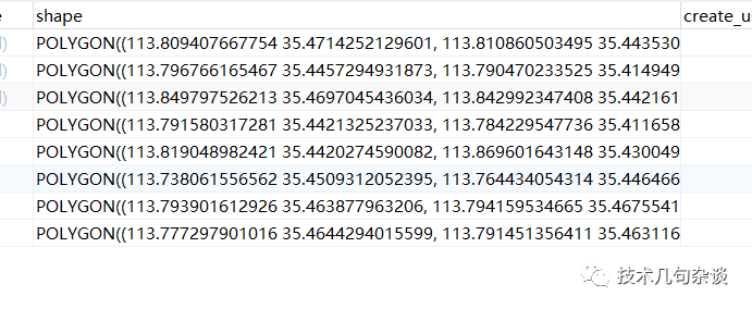 首先,查询mysql的空间数据表,显示空间数据的结果为wkt格式。