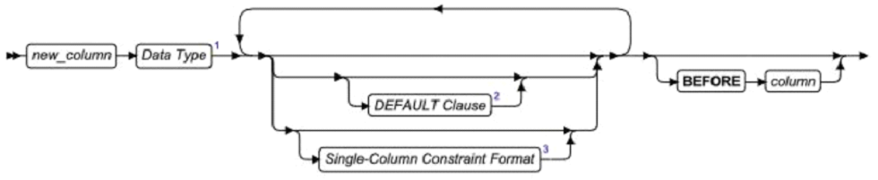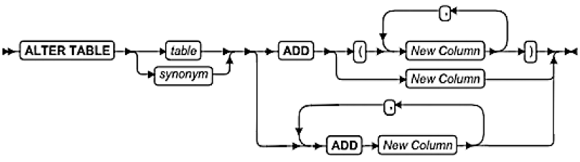 ALTER TABLE支持添加多列的语法,即ADD新列, ADD新列,该功能仅在GBase8s的ORACLE模式下支持。语法图如下:
