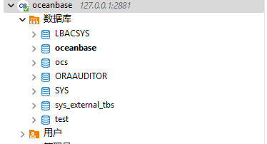 obclient -h127.0.0.1 -P2881 -uroot@test -Doceanbase -A
