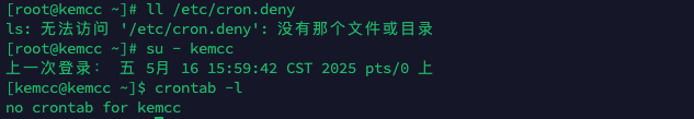 [root@kemcc ~]# echo "kemcc" >> /etc/cron.allow