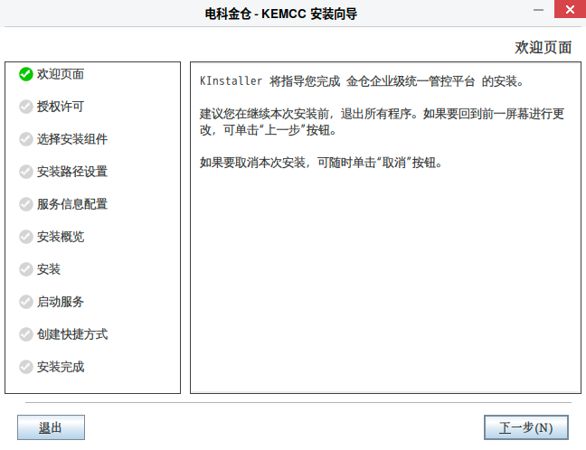 当页面成功显示信息时,即表示 KEMCC 安装完成: