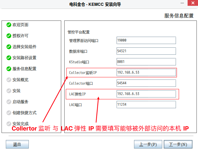 其中 Collertor 监听 IP 与 LAC 弹性 IP 需要填写能够被外部访问的本机 IP: