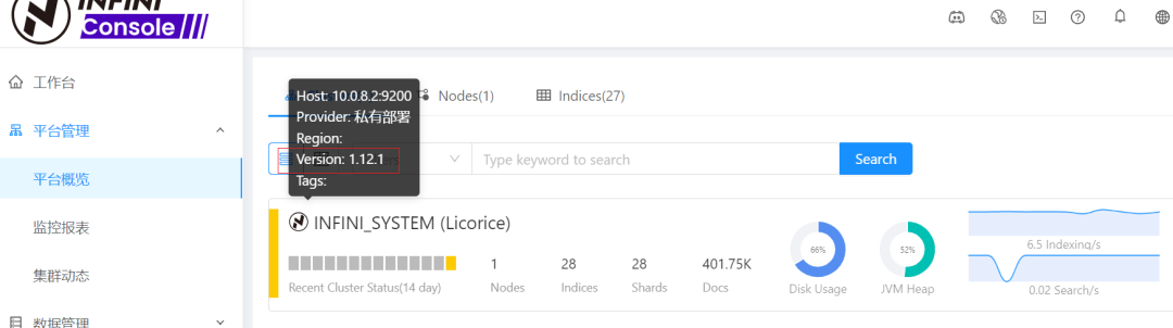 Easysearch集群:一个运行中的实例(例如 https://127.0.0.1:9200/