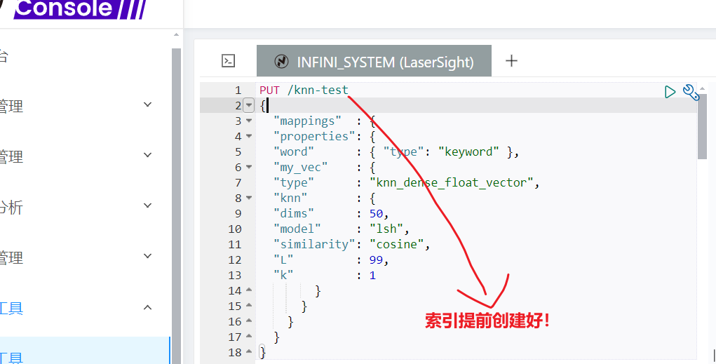 )。Python依赖:安装必要的Python库: pip install Easysearch urllib3 numpy索引映射:Easysearch中已创建的索引( knn-test