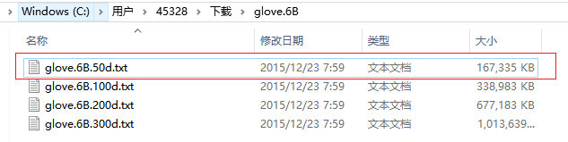 GloVe文件:预训练的GloVe 向量文件(例如 glove.6B.50d.txt