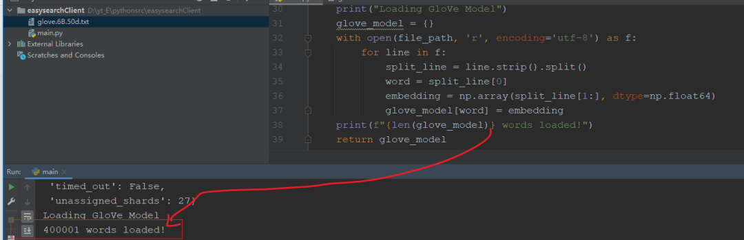 指定GloVe文件路径和目标索引。 将GloVe模型加载到内存。 将所有向量索引到Easysearch。