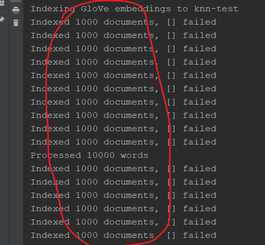 函数将 GloVe 嵌入分批索引到 Easysearch: