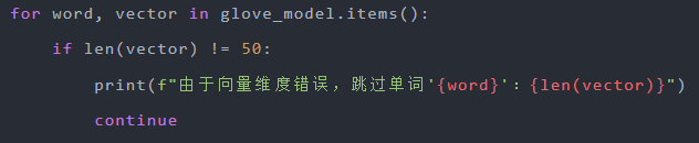 print(f"由于向量维度错误,跳过单词'{word}':{len(vector)}")