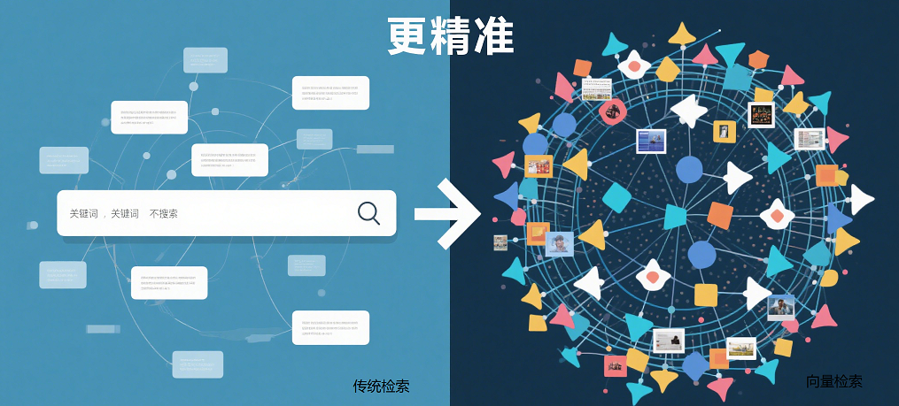 传统的关键词匹配往往无法捕捉深层语义,而向量检索(Vector Search)通过将文本、图像等数据转化为高维向量,利用向量间的相似性度量(如余弦相似度)来实现更精准的语义匹配。