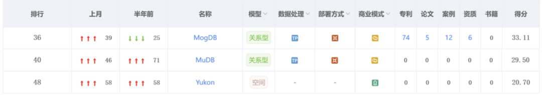 在本月的国产数据库排行榜中,除前十强产品外,一批技术扎实、表现突出的“中坚选手”同样值得关注。它们在性能优化、行业应用、版本迭代和生态构建等方面不断进展,逐步在国产数据库生态中展现价值。