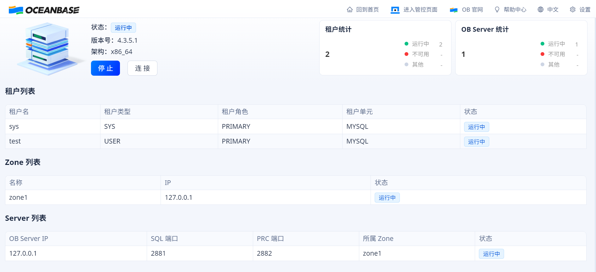 我个人比较感兴趣的是OB桌面版正式发布,这次不再是有限范围邀测,而是正式的发布了,任何对OB数据库感兴趣的小伙伴都可以来下载试用;从去年的一体化,到最近发布的单机版,再到现在的桌面版,OB也慢慢的成为“旧时王谢堂前燕,飞入寻常百姓家”。OB的学习和试用的门槛越来越低,安装维护也越来越便捷,这无疑是对DBA是越来越友好,考证的兄弟都知道目前国产数据库认证含金量最高的应该就属OB了,但是原来很多DBA受限于没有生产环境,实验环境安装对资源要求较高,没办法实际上手使用,单纯背个题库去考试还是“纸上得来终觉浅”,上手去用去运维去实验,才是学习一个数据库的正确道路。目前OB是真的做到了这点,大家有兴趣的赶紧来下载尝试吧。下面是我用半小时就安装成功的桌面版上手示例,供参考。
