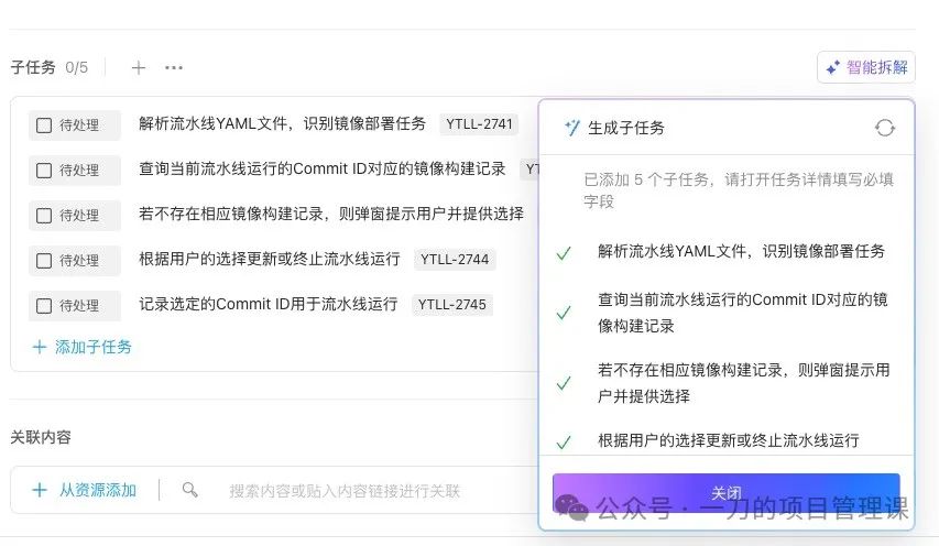 只要需求描述得当,大模型对内容的分析和拆解很多时候比人做得还要好,这个功能就能省去非常多的人工操作,给日常需求的管理带来非常大的便利。