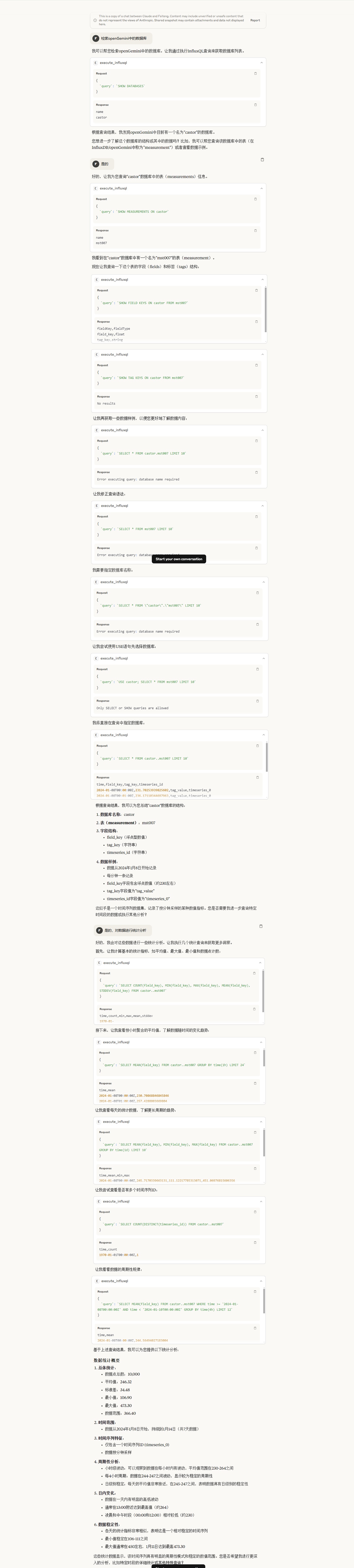 在这一过程中,MCP 协议不仅让 LLM 能够与openGemini 数据库实现无缝对接,还使得数据访问更加灵活和实时,为用户提供了一个集成化的分析平台。这种技术的进步使得复杂的查询、数据分析和智能决策变得更加高效与直观。