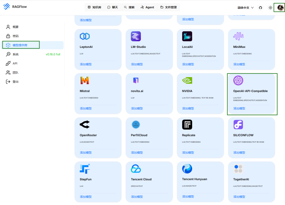 ● 如需添加不同类型模型,可完成一种模型的添加后,选中相应的模型供应商后,点击添加模型,进行再一次的添加。