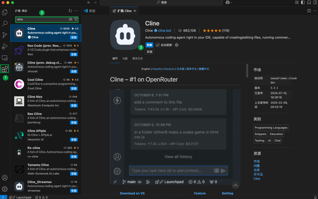 · 步骤二 在 VSCode 上安装 Cline ·
