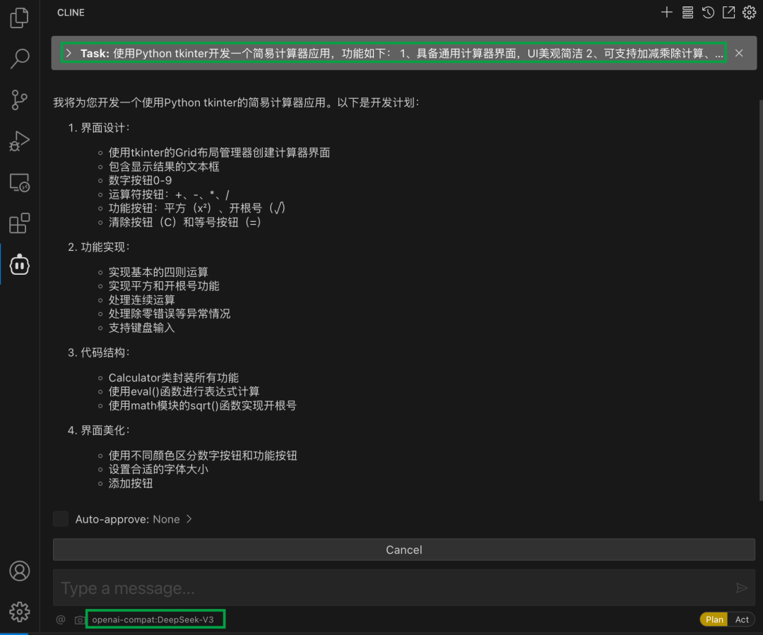 Cline 是一款先进的 AI 编程插件,旨在提升开发者的编程效率和代码质量,其与 VSCode 无缝集成,具备智能代码补全、自动错误检测和修复、代码重构以及多语言支持等功能。