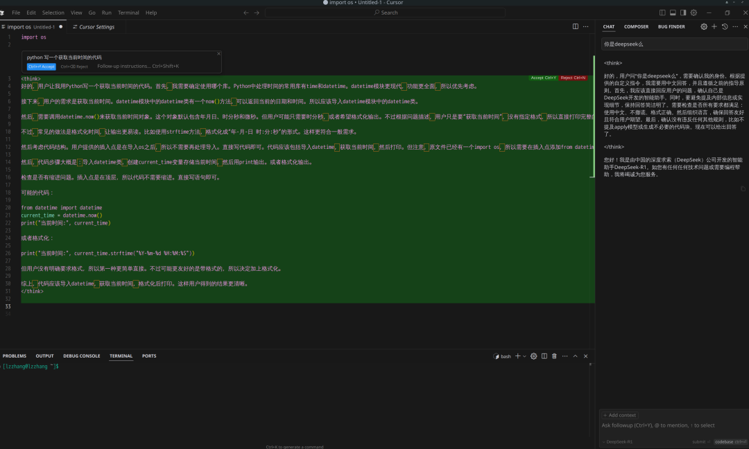 本文将以基石智算大模型服务中的 DeepSeek-R1 为例,向用户介绍如何在本地使用 Cursor 客户端,并调用 DeepSeek API。